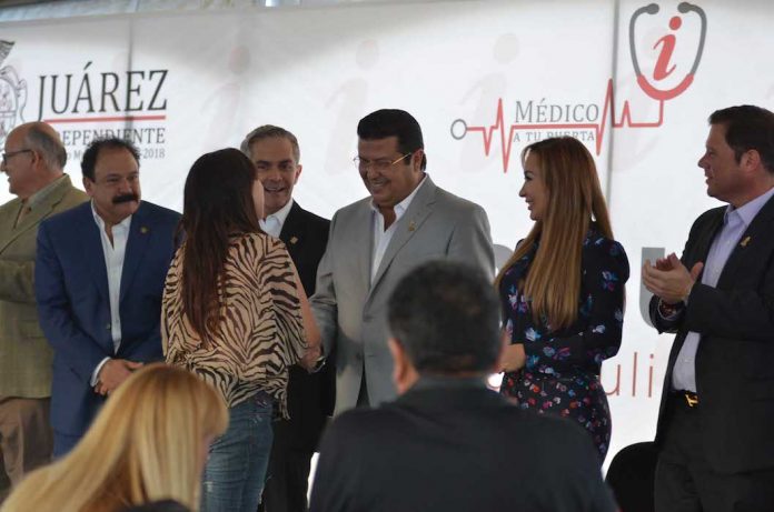 Ciudad Juárez, Chih. – El centro comunitario Granjas de Chapultepec fue la sede de la firma de un convenio para poner en marcha el programa “Médico a tu Puerta”, evento que estuvo encabezado por el Presidente Municipal, Armando Cabada Alvídrez y el Jefe de Gobierno de la Ciudad de México, Miguel Ángel Mancera Espinosa.