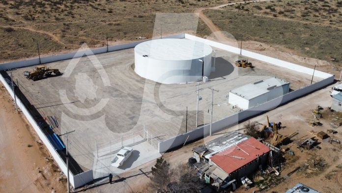El tanque tiene una capacidad de 3 mil metros cúbicos o 300 mil litros y habrá de sumarse al tanque 40, que tiene una capacidad de 3 mil metros cúbicos o 300 mil litros y que se ubica en la calle Del Durazno y De las Flores, en Rancho Anapra.