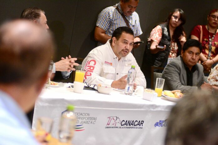 En un encuentro con socios de la Asociación de Transportistas de Carga de Ciudad Juárez, el candidato a la alcaldía por la coalición “Sigamos Haciendo Historia por Chihuahua”, Cruz Pérez Cuéllar, presentó sus propuestas y escuchó las preocupaciones del sector.