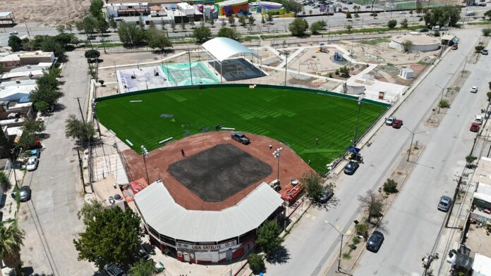 Ciudad Juárez, Chih .- Daniel González García, director general de la dependencia, comentó que los avances en el espacio son bastante notorios, debido a que ya se afinan detalles en la colocación del pasto sintético.
