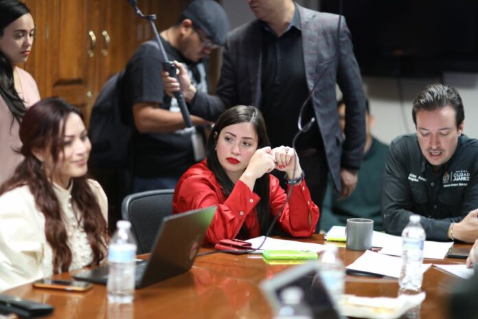Ciudad Juárez, Chih .- Este viernes, la Comisión integrada por el coordinador, regidor Alejandro Daniel Acosta Aviña, además de Laura Fernanda Ávalos Medina y Alejandro Alberto Jiménez Vargas, dialogaron con la directora general de Desarrollo Económico, Tania Maldonado Garduño y el director de Turismo, Francisco Moreno Villafuerte, quienes presentaron ante la Comisión dos proyectos.