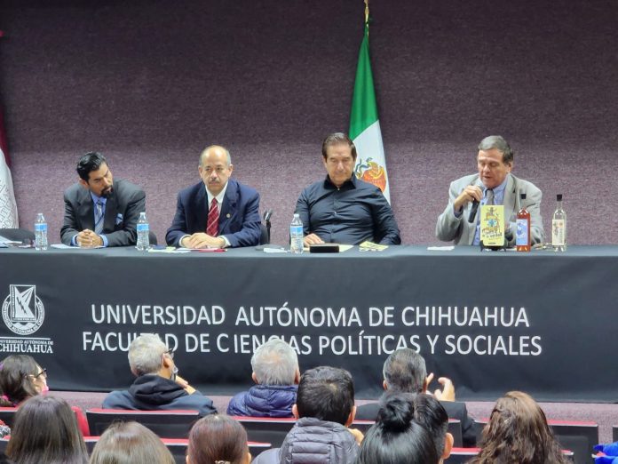 Benito Aguirre Sáenz agradeció a la Universidad Autónoma de Chihuahua, al Rector Luis Rivera Campos, al Director de la Facultad Mario Alberto Duarte, así como a la Secretaría General de la UACH Georgina Bujanda Ríos por abrir los espacios para convivir en un diálogo entre universitarios y presentar la productividad académica que se realiza dentro de las vida de las instituciones de educación superior en México.