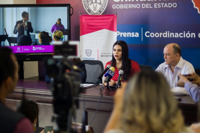 Austria Galindo, subsecretaria de Cultura, Gema Olivares, encargada del Departamento de Cultura Infantil y Juvenil, y el Dr. Víctor Talamantes, subdirector médico en la Zona Norte, presentaron en rueda de prensa al talento juarense que conformará las actividades que se llevarán a cabo en Hospital Infantil, Hospital General, Hospital de Salud Mental, Hospital de la Mujer y las salas de consulta externa del Hospital General y del Hospital de la Mujer.