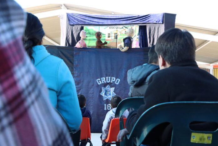 La Dirección de Prevención Social de la Secretaría de Seguridad Pública Municipal (SSPM), con elementos adscritos al Grupo 16, impartió temas preventivos a través del teatro guiñol a los niños, padres de familia y maestros del Centro de Atención Múltiple 7012.