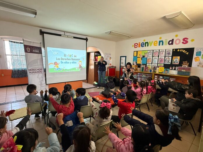 Ciudad Juárez, Chih. (ADN/Staff) – La Dirección de Derechos Humanos del Municipio impartió el taller “El ABC de los Derechos Humanos de Niñas y Niños” en el Jardín de Niños 20 de Noviembre, con el objetivo de fomentar desde la primera infancia el conocimiento y respeto de sus derechos fundamentales.