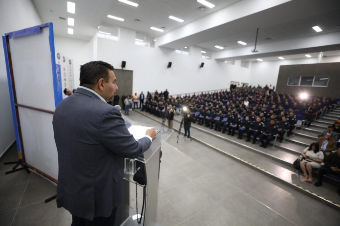 Como parte de la estrategia para contar con una policía mejor capacitada, fueron promovidos 63 elementos de la Secretaria de Seguridad Pública Municipal y este día recibieron su Constancia de Grado en una ceremonia especial en el auditorio de la Academia Municipal de Policía.