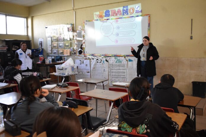 Ciudad Juárez, Chih. (ADN/Staff) – Como resultado de reuniones bilaterales entre el Instituto Municipal de las Mujeres (IMM) y la organización internacional Médicos del Mundo Francia, se llevó a cabo un taller informativo sobre métodos anticonceptivos y prevención del embarazo adolescente, dirigido a estudiantes de la Escuela Secundaria Estatal 3004.