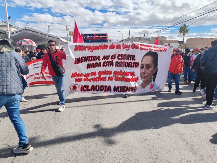 Docentes exigieron la abrogación de la Ley del ISSSTE 2007 con mensajes dirigidos a la presidenta Claudia Sheinbaum.