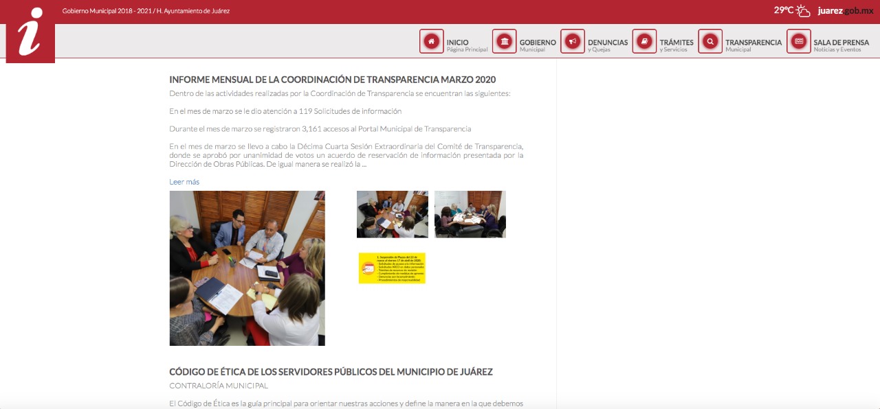 Ciudad Juárez, Chih. – Explicó que el documento está conformado por las acciones realizadas por el Gobierno Municipal del 1 al 31 de materia en materia de acceso a la información, mismo que puede ser consultado en el apartado de Transparencia del portal de internet www.juarez.gob.mx.