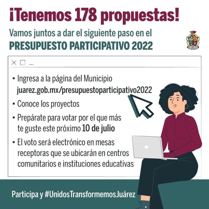 “Ya tenemos las 178 propuestas del Presupuesto Participativo que serán votadas el próximo 10 de julio por las y los juarenses para mejorar nuestra ciudad”, escribió.