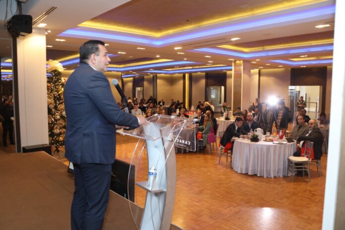 El presidente de la Cámara Nacional de la Industria de Transformación (Canacintra), Jesús Manuel Salayandía, expuso ante los empresarios y el alcalde un análisis y panorama del desarrollo de la proveeduría, a través de una radiografía de la frontera desde el punto de vista económico.