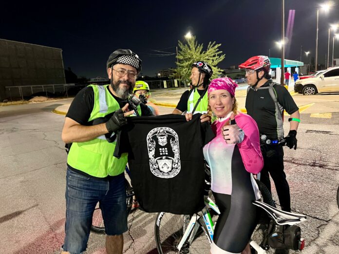 El colectivo ciclista “Bastards” invitó a la candidata a la sindicatura, Ana Carmen Estrada, a participar en una rodada nocturna por las calles de Ciudad Juárez. La ruta comenzó en Rio Grande Mall, recorrió el centro de la ciudad y regresó al punto de partida.