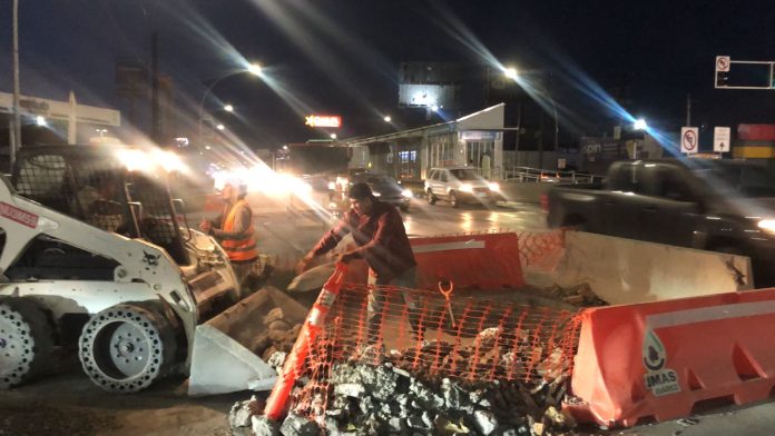 Ciudad Juárez, Chih .- La jefatura del área Bacheo menciona que, en horario nocturno se inició con la colocación de concreto hidráulico en el cruce de Av. Vicente Guerrero y Tecnológico.
