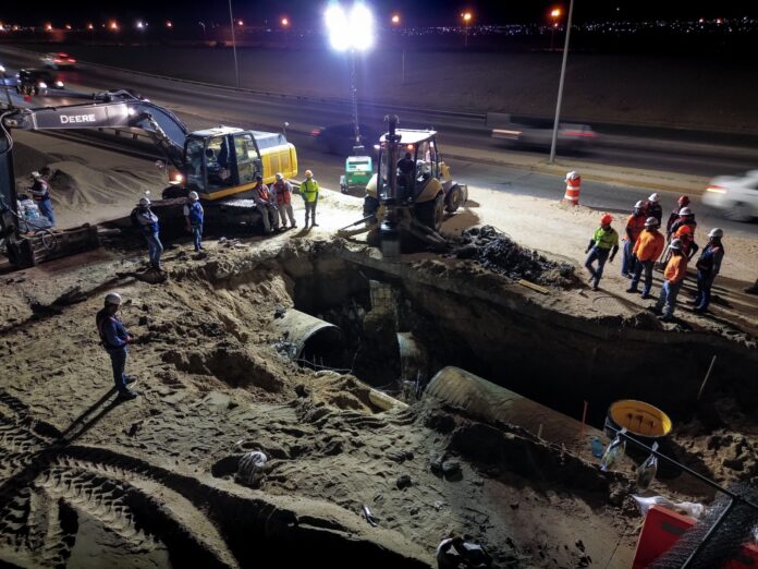 El director de Obra de la Junta de Agua y Saneamiento de Ciudad Juárez, afirmó que este trabajo en el Bulevar Cuatro Siglos resuelve el problema de afectaciones al drenaje de las viviendas cercanas, además previene los riesgos de más hundimientos del Bulevar Cuatro Siglos.
