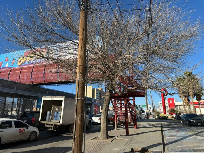 Ciudad Juárez (ADN/Staff) – La Dirección de Parques y Jardines realizó trabajos de poda formativa en un árbol ubicado en el cruce de la avenida Paseo Triunfo de la República y López Mateos, con el objetivo de prevenir riesgos para peatones que transitan por el sector.