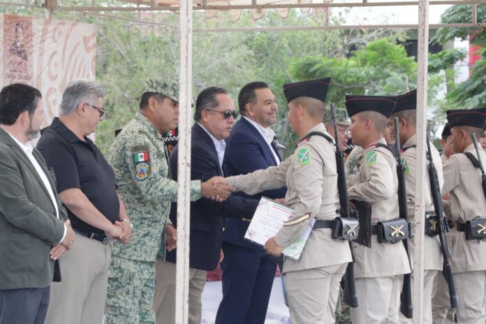 El Presidente Municipal, Cruz Pérez Cuéllar, participó hoy en la ceremonia de entrega de cartillas liberadas del Servicio Militar Nacional a cerca de 100 jóvenes que por tres meses cumplieron con su adiestramiento en el Noveno Regimiento de Caballería Motorizado.
