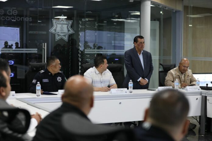 Ciudad Juárez, Chih .- La reunión se llevó a cabo en el Centro de Emergencia y Respuesta Inmediata de la Secretaría de Seguridad Pública Municipal, y el Presidente Municipal señaló que se hizo la invitación al Presidente Suplente con el fin de que conociera la dinámica de esta actividad que tiene como fin coordinar la seguridad de los tres niveles de gobierno.