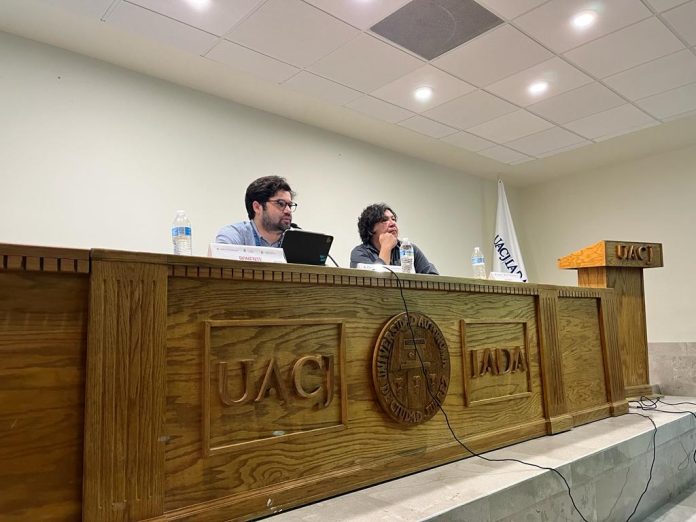 Ciudad Juárez, Chih .- Como ponentes se contó con la participación de Thiago Almeida, jefe de la oficina de la Organización Internacional para las Migraciones (OIM) en Ciudad Juárez y Héctor Padilla Delgado, profesor de la Universidad Autónoma de Ciudad Juárez (UACJ).