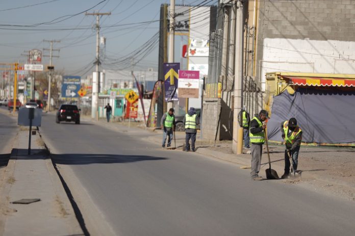 Como parte del compromiso que el Gobierno Municipal hizo con comerciantes ubicados en distintos puntos de la ciudad, personal de la Dirección General de Servicios Públicos realiza trabajos previos a la Cruzada Nocturna en el corredor comercial de la calle Valle del Sol, dio a conocer Arturo Rivera Barreno, titular de la dependencia.