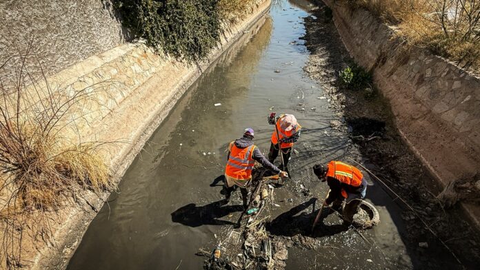 Una vez concluidos los trabajos de extracción de azolve y basura de la Acequia Madre, la Junta de Agua y Saneamiento de Juárez realizará acciones de desinfección del canal, mencionó el maestro César Triana, director de Obra de la J+.