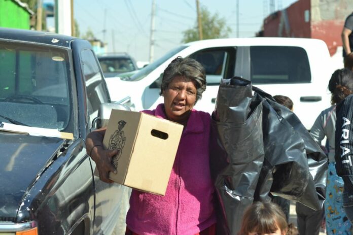 Ciudad Juárez, Chih .- “Por instrucción del Presidente Municipal, Cruz Pérez Cuéllar, nos acercamos a un grupo de 40 familias en situación vulnerable, con la finalidad de proveerlos de material para la construcción, despensas y cobijas para mitigar el frío”, explicó el funcionario.