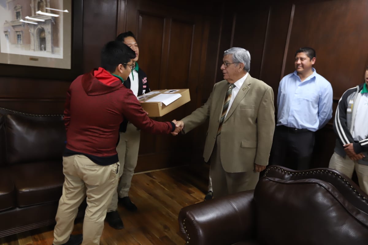 Allí, el funcionario recibió a la comitiva del plantel, quienes acudieron para agradecer la donación de un kit de robótica por parte del administrador de la Ciudad, el cual servirá para que los estudiantes representen a Ciudad Juárez en el Torneo Nacional de Robótica que se celebrará en Tijuana, Baja California del 3 al 7 de marzo.