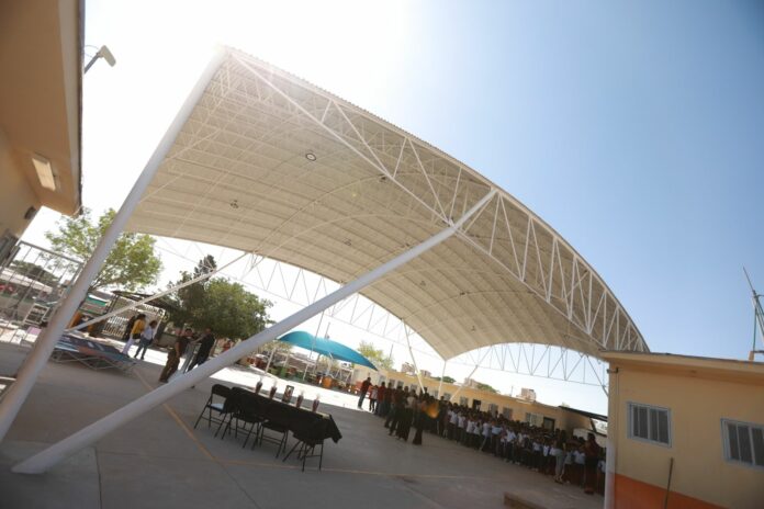 Estudiantes de la primaria Educar para la Libertad ya cuentan con su propio domo, el cual les permitirá realizar múltiples actividades este verano, sin que el intenso sol les afecte.