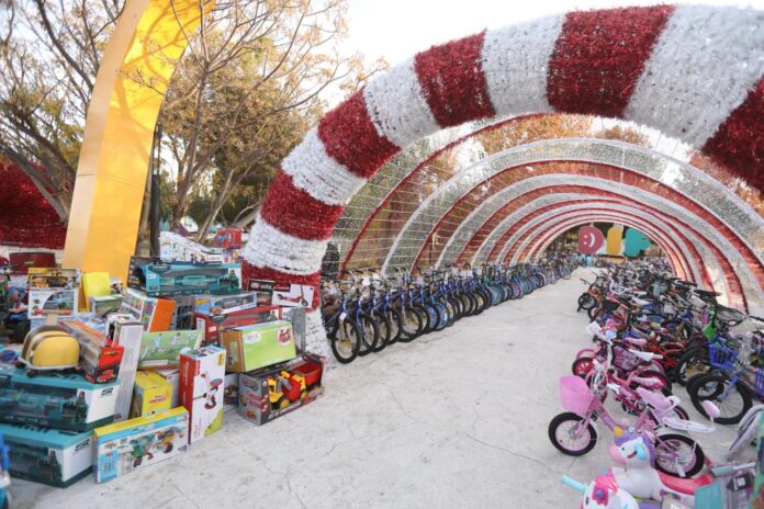 Ciudad Juárez, Chih. (ADN/Staff) – Desde las primeras horas de este 24 de diciembre, miles de familias juarenses se congregaron en la Villa Navideña a lo Mexa para que niñas y niños recibieran un regalo como parte de la tradicional entrega de juguetes del Santa Bombero, una de las actividades solidarias más representativas de la ciudad.