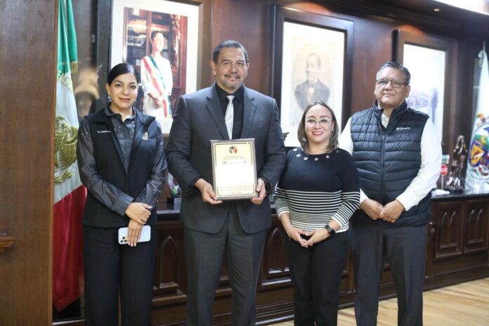 Desdémona García Cervera, coordinadora de la sección Juárez de dicha comisión, visitó al alcalde en su despacho para entregarle personalmente el reconocimiento, en agradecimiento a las acciones emprendidas por la Administración Municipal 2024–2027 en favor de la salud comunitaria y la prevención de enfermedades en la región.