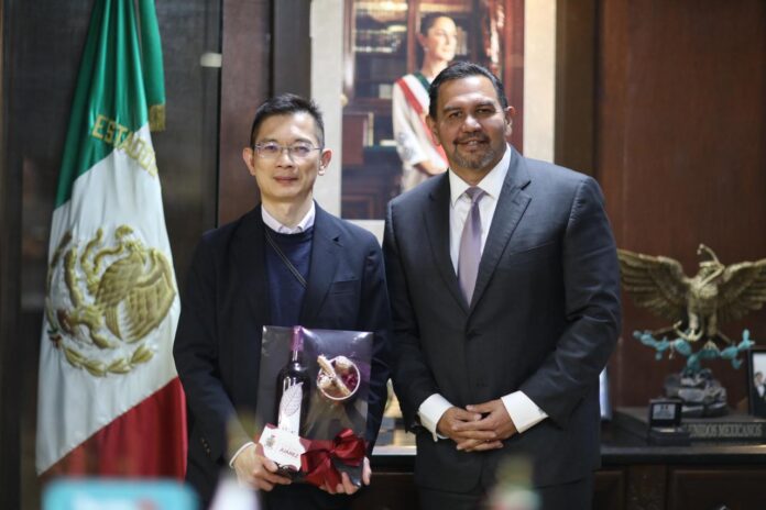 Ciudad Juárez, Chih. (ADN/Staff) – Representantes de la empresa Pegatron México acudieron este jueves al despacho del Presidente Municipal, Cruz Pérez Cuéllar, para expresar su reconocimiento por el respaldo que el Gobierno Municipal ha brindado en materia de seguridad y movilidad para sus trabajadores. La reunión estuvo encabezada por Ileana Wong, directora del departamento de administración, y Ye Yu Jou, gerente general de la compañía.