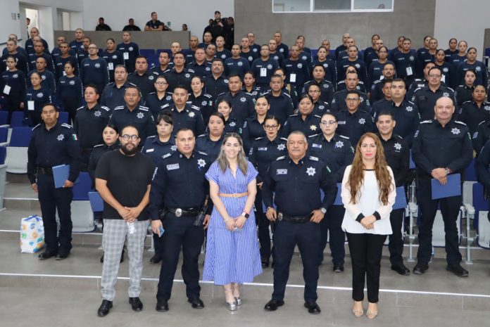 El evento se llevó a cabo en el auditorio de la Academia Municipal de Policía, presidido por el secretario de Seguridad Pública Municipal, César Omar Muñoz Morales; el coordinador general de la SSPM, Jesús Moctezuma Sánchez; la directora de la Academia, Rocío Violeta García Medina; Cristina Pérez Aguirre, directora de Recursos Humanos de la SSPM y el pastor de Vino Nuevo, Raúl Hernández.