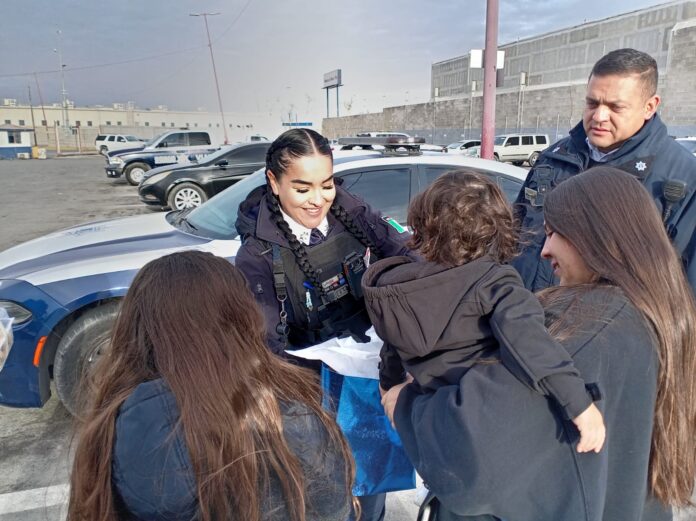 Ciudad Juárez, Chih. (ADN/Staff) – Elementos de la Coordinación General de Seguridad Vial entregaron regalos navideños a dos menores de edad que fueron auxiliados durante una emergencia registrada el pasado 22 de diciembre, como reconocimiento y gesto de cercanía con la familia afectada.