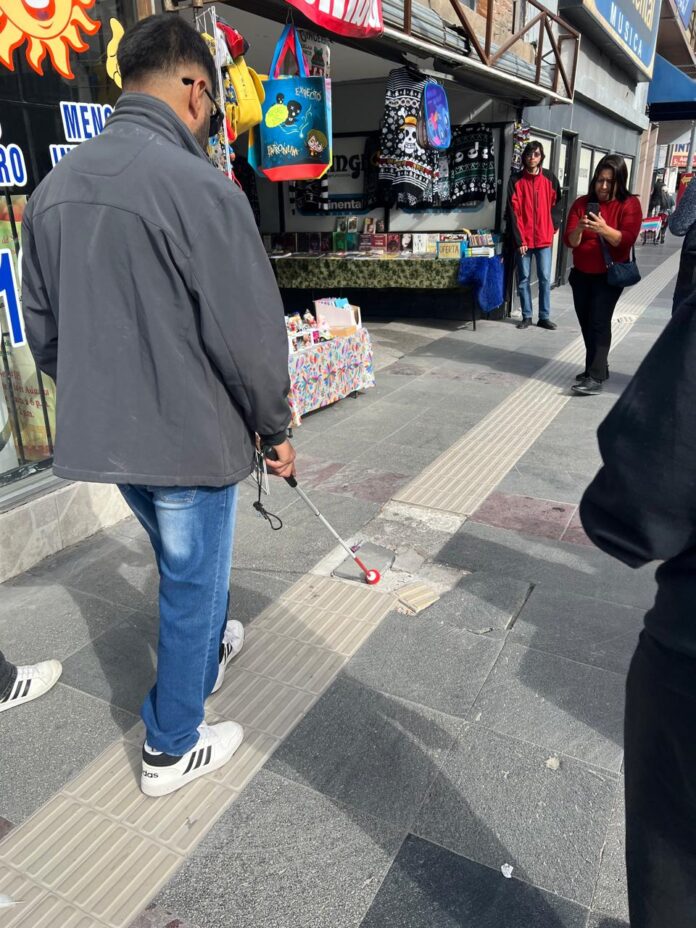 Ciudad Juárez, Chih. (ADN/Staff) – Regidores integrantes de la Comisión Edilicia de Movilidad realizaron este viernes un recorrido por la avenida Juárez, en el Centro Histórico de la ciudad, con el objetivo de verificar el estado actual de las guías podotáctiles instaladas para personas con discapacidad visual, y constatar posibles obstrucciones o daños que impiden su uso adecuado.