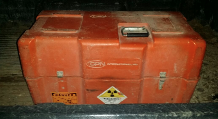 En la caja de la camioneta se localizó un estuche de gran medida de color rojo con una advertencia de material radioactivo.