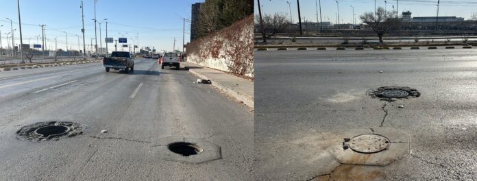 En beneficio de miles de residentes y guiadores que transitan diariamente por la Avenida Panamericana, en la salida sur de la ciudad, la J+ sustituyó seis tapas de alcantarillas que habían sido robadas en el tramo comprendido entre las calles Barranco Azul y Aeronáutica, frente al Aeropuerto Internacional Abraham González.