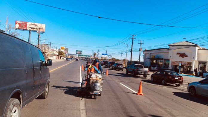 Ciudad Juárez, Chih. (ADN/Staff) – La Coordinación General de Seguridad Vial, a través del área de Control de Tráfico, reforzó la señalización vial sobre la avenida Waterfill, en el tramo que conduce al Puente Internacional Zaragoza, como parte de las acciones permanentes de mejora a la infraestructura vial.