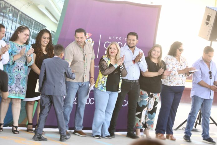 A la ceremonia de entrega acudieron el director de Servicios Públicos Municipales, Arturo Rivera Barreno; el coordinador de Infraestructura Educativa del Municipio, Ismael Rueda; la directora de Educación, Martha Aracely González Holguín y el regidor Jorge Marcial Bueno Quiroz.
