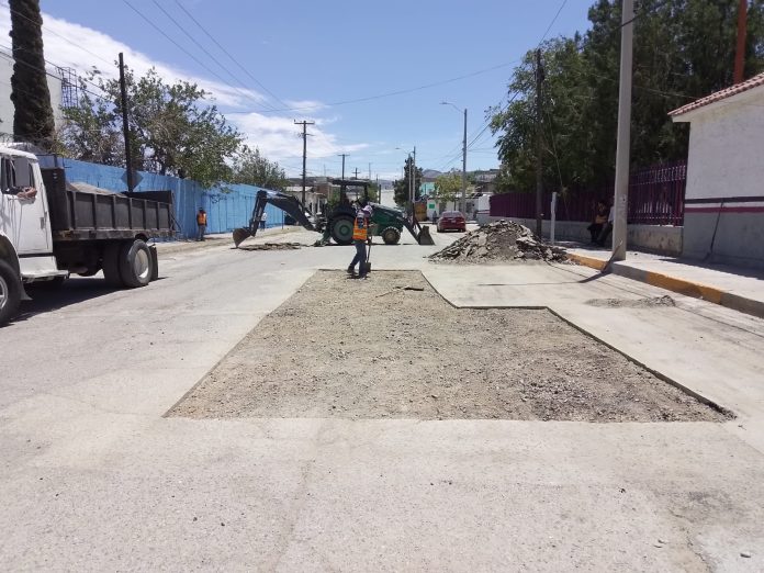 Ciudad Juárez, Chih .- Para ello, el personal de la dependencia llevó a cabo en los alrededores de la Unidad Deportiva Revolución, los trabajos de bacheo, rastreo de calles de terracería, así como el acarreo de fresado a diversas intersecciones.