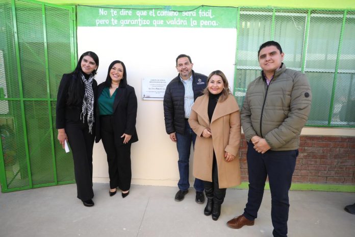 A la ceremonia de entrega acudió Martha Aracely González Holguín, directora de Educación del Municipio, Ismael Rueda Fernández, coordinador de Infraestructura Educativa; Arturo Rivera Barreno, director general de Servicios Públicos y la regidora Karla Escalante.