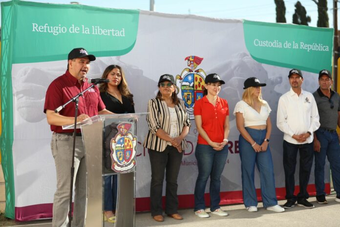 La funcionaria destacó que el mural fue pintado con la colaboración de grupo COMEX y representa la identidad juarense, con su historia, fauna y lugar en el deporte, como cuna de campeones en el boxeo, basquetbol y lucha libre.