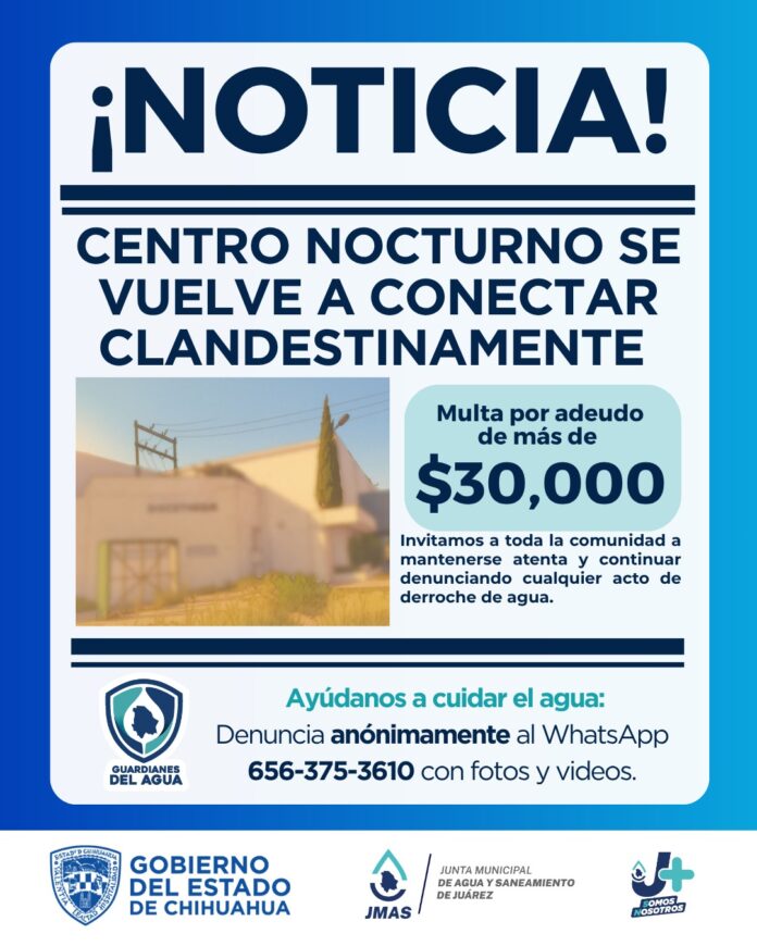 Si algún ciudadano conoce de casos de robo o mal uso del agua potable, puede hacer su denuncia de forma anónima al WhatsApp 656-375-3610, anexando fotos o videos para localizar más fácil el lugar señalado.