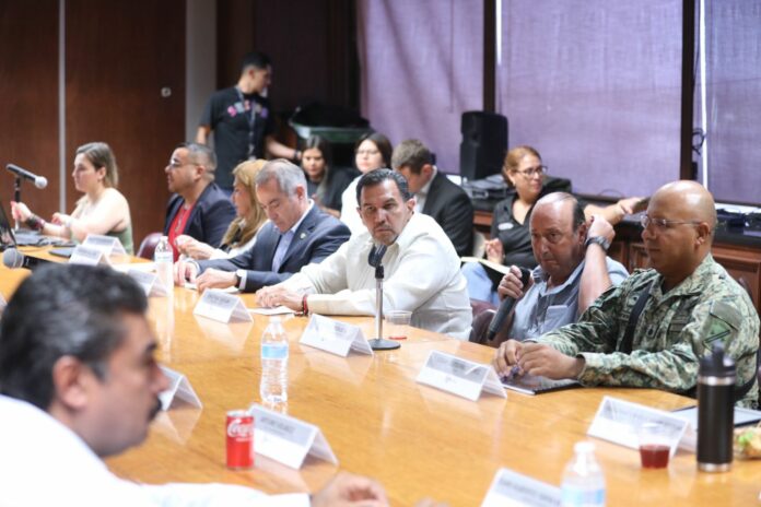 Ciudad Juárez, Chih .- La reunión se llevó a cabo en la Unidad Administrativa Lic. Benito Juárez, donde estuvieron autoridades de los tres niveles de gobierno y representantes de cámaras empresariales, del sector académico e iniciativa privada que forman parte de esta red de articulación.