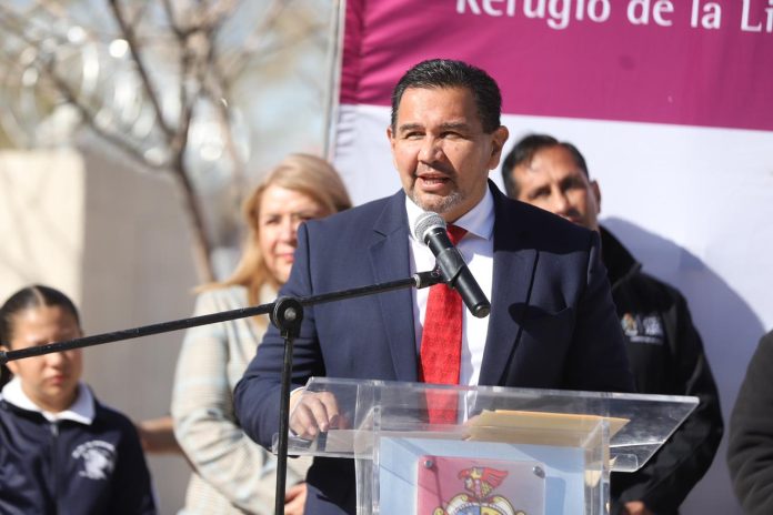 Ciudad Juárez, Chih .- La mañana de este miércoles el Presidente Municipal acudió a la escuela para entregar los trabajos de remodelación, que consistieron en trabajos de pintura y resane exterior en salones y muro perimetral, así como la impermeabilización de seis naves de aulas.