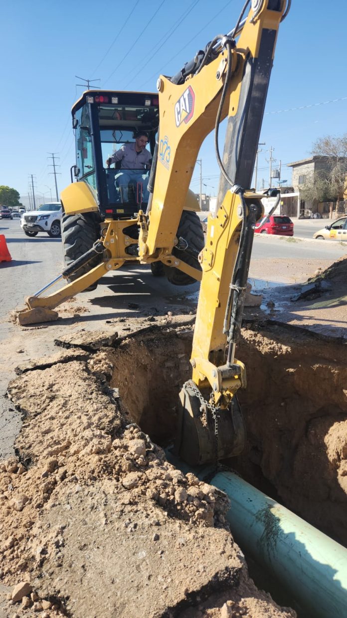 Ciudad Juárez, Chih .- En el lugar se encuentra instalado un colector de 24 pulgadas de diámetro, del cual se reemplazarán 15 metros, durante el transcurso de esta tarde.