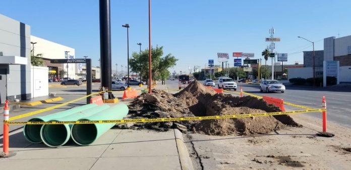 La autoridad precaución a automovilistas y peatones que transiten por el cruce de esa avenida con Oscar Flores Sánchez; trabajos terminarán hasta el próximo sábado.