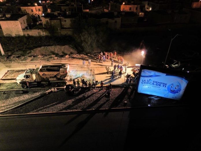 Ciudad Juárez, Chih. (ADN/Staff) – El equipo de la J+ en Ciudad Juárez ha culminado con éxito la reparación de dos tramos del colector ubicado en el bulevar Juan Pablo II. Tras una ardua labor que incluyó el uso de concreto de alta calidad y fraguado rápido, se logró completar la pavimentación de esta importante avenida durante las primeras horas del domingo.
