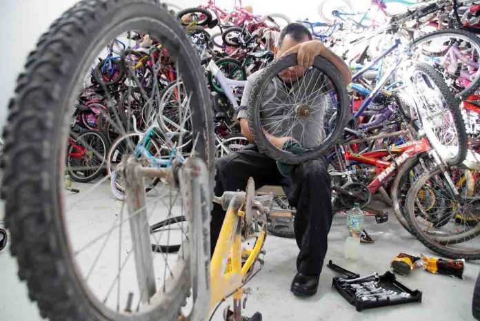 “Ahora mi oficina es aquí, sólo espero a que me den instrucciones para empezar a trabajar limpiando las bicicletas, les cambiamos las cámaras y las llantas, lubricamos las cadenas y les hacemos arreglos hasta que queden listas”, explicó.