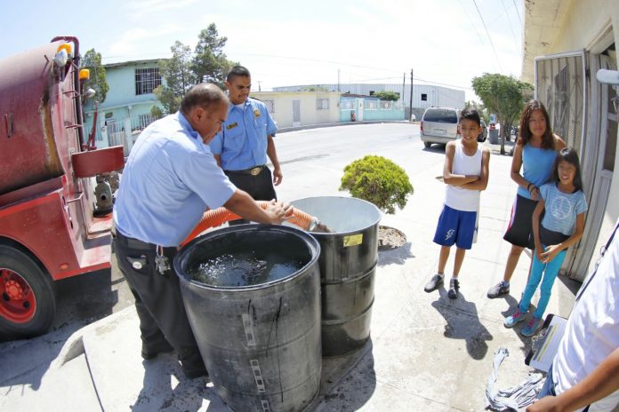 Ciudad Juárez. Chih. – Con el propósito de solidarizarse con las familias que tienen desabasto de agua potable, el Presidente Municipal, Armando Cabada Alvídrez, dio banderazo a la salida de 12 pipas de agua que desde ayer y hasta el fin de semana estarán regalando el líquido en 16 colonias de la ciudad.