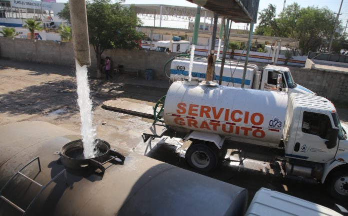 Ciudad Juárez, Chih. (ADN / Martín Orquiz) – Cada semana, personal de la Junta Muni9ciápmde Agua y Saneamiento (JMAS), entrega 1 mil 850 metros cúbicos, que equivalen a 1 millón 850 mil litros, de agua a la zona denominada los kilómetros, polígono comprendido por 18 colonias sobre la carretera a Casas Grandes.