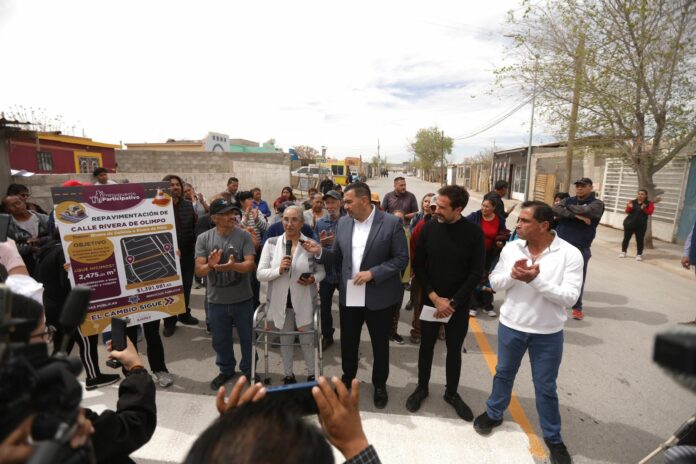 Residentes de Riberas del Bravo recibieron de manera oficial los trabajos de repavimentación de la calle Rivera del Olimpo, en el tramo que comprende de las calles Rivera de Delicias y Rivera de Mitla.